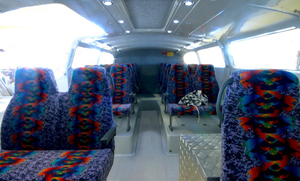 AccommodationThis cabin is fully enclosed with two large gull wing doors. Air-conditioned comfort for 1-2 crew plus 23 to 25 passengers.